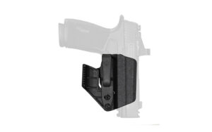Mission First Tactical’s Minimalist Holster is a low profile holster with all the performance and reliability of a full-size holster. For use Inside the Waistband (IWB) in the Appendix and 5:00 positions. Both right & left-hand positioning is accomplished with the removal of the claw and use of provided spacer. The claw, for right handed shooters, keeps the heel of the firearm pressed into your side minimizing its print. Remove the clip and claw and add a static-line tether keeping the trigger secure while using the firearm inside a night stand safe, purse, briefcase, vehicle console, etc.