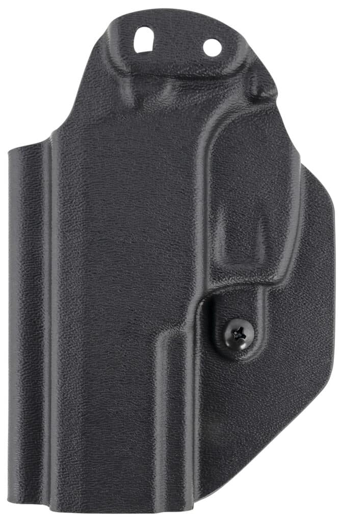 Mission First Tactical Minimalist Holster is a low-profile holster with all the performance and reliability of a full-size holster. For use Inside the Waistband (IWB) in the Appendix and 5:00 positions. Both right & left-hand positioning is accomplished with the removal of the claw and use of provided spacer. The claw, for right-handed shooters, keeps the heel of the firearm pressed into your side minimizing its print. The famous audible click with added side retention makes each draw smooth and secure ideal for Concealed Carry. Each holster is handmade to precise tolerances for each model of handgun using the most advanced techniques and materials for an all-day comfortable carry. Holsters include a Tuckable Belt Clip that accommodates a 1.50″ belt. Or remove the clip and claw and add a static-line tether keeping the trigger secure while using the firearm inside a night stand safe, purse, briefcase, vehicle console, etc.