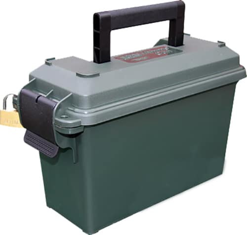 MTM’s 30 Caliber Ammo Can, in short or tall model, is molded out of rugged polypropylene plastic, and this comfortably handled ammo can will hold up to some pretty harsh treatment. Lighter weight than a military surplus can, both the tall and short design offer the same capacity as a traditional 30 caliber military ammo can and will not rust. A heavy-duty dual latching system makes for a better seal that is less likely to open accidentally while the tongue and groove O-Ring seal system make it water-resistant. Heavy duty padlock tabs along with molded-in stacking ridges make these forest green containers the perfect solution to so many storage needs.