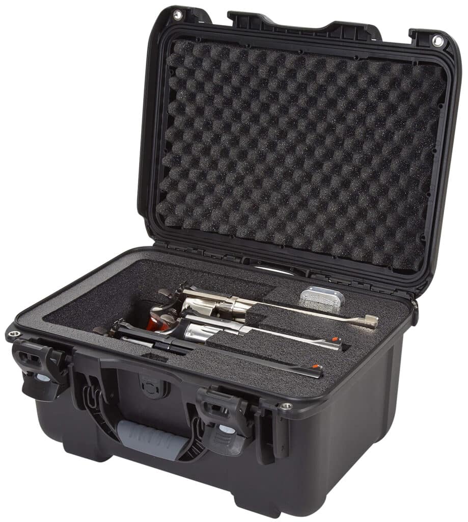 Built to organize, protect, carry and survive tough conditions, the NANUK 918 waterproof hard case is impenetrable and indestructible with a lightweight tough NK-7 resin shell and PowerClaw superior latching system. With NANUKs exclusive locking and latching system, your case stays shut and secured until you are ready to open it. The protective foam also has a pre-cut slot for a NANUK Desiccant Pack which protects revolvers from rust and corrosion caused by moisture or high humidity. The NANUK 918 3 Up Revolver Case has two lockable options: two reinforced metal eyelets accommodate TSA-accepted case locks and TSA latch retro-fit kits which are easy to install and add an extra measure of security.