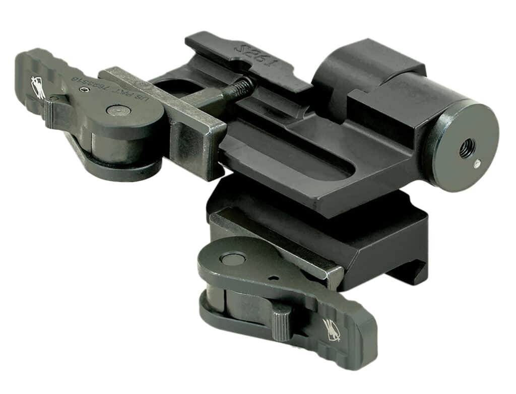 Developed in collaboration between American Defense Manufacturing and iRayUSA, the AC55 Flip-to-Side mount is designed for the RICO MICRO (RH25V2), enabling seamless integration with a day optic like an LPVO or a holographic sight with magnifier. Instead of removing and reinstalling a thermal clip-on unit, users can simply flip the MICRO in or out of place to transition between thermal and day optics. The mounts versatile design allows for multiple configurations depending on the desired side of the hinge and QD lever placement. Reversible design can be used to hinge to the left or to the right. The 2.05″ co-witness height is designed for compatibility with night-vision height optics.Compatible with RH25V2, RL25V2 and first generation RH25 models.Requires AC52 “Pictail” mount.
