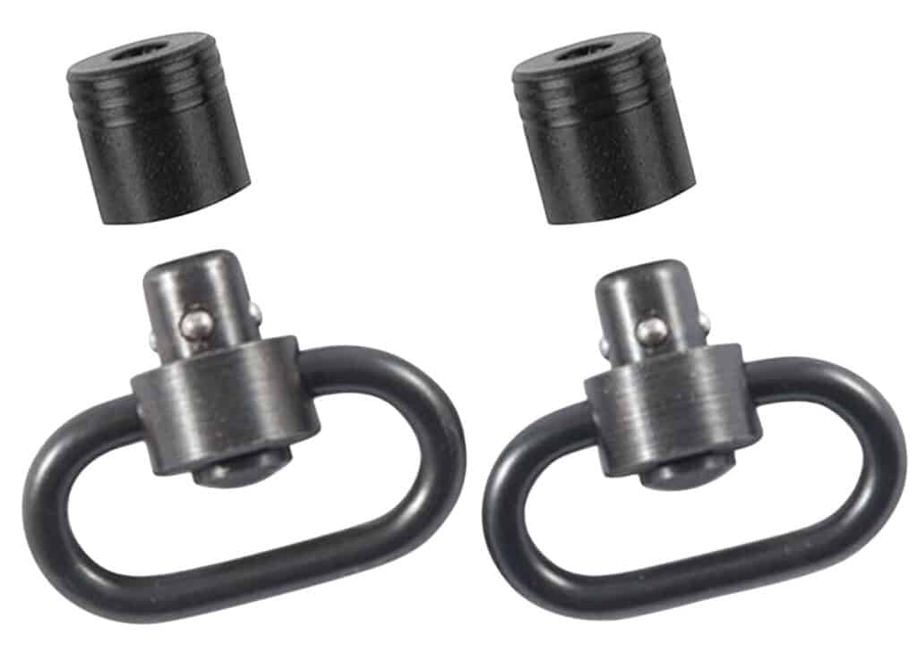 The Push Button Swivel Set from Outdoor Connection features two push button swivels with black finish. It is compatible with most push-button swivel mounting points and includes flush mount cup style bases.
