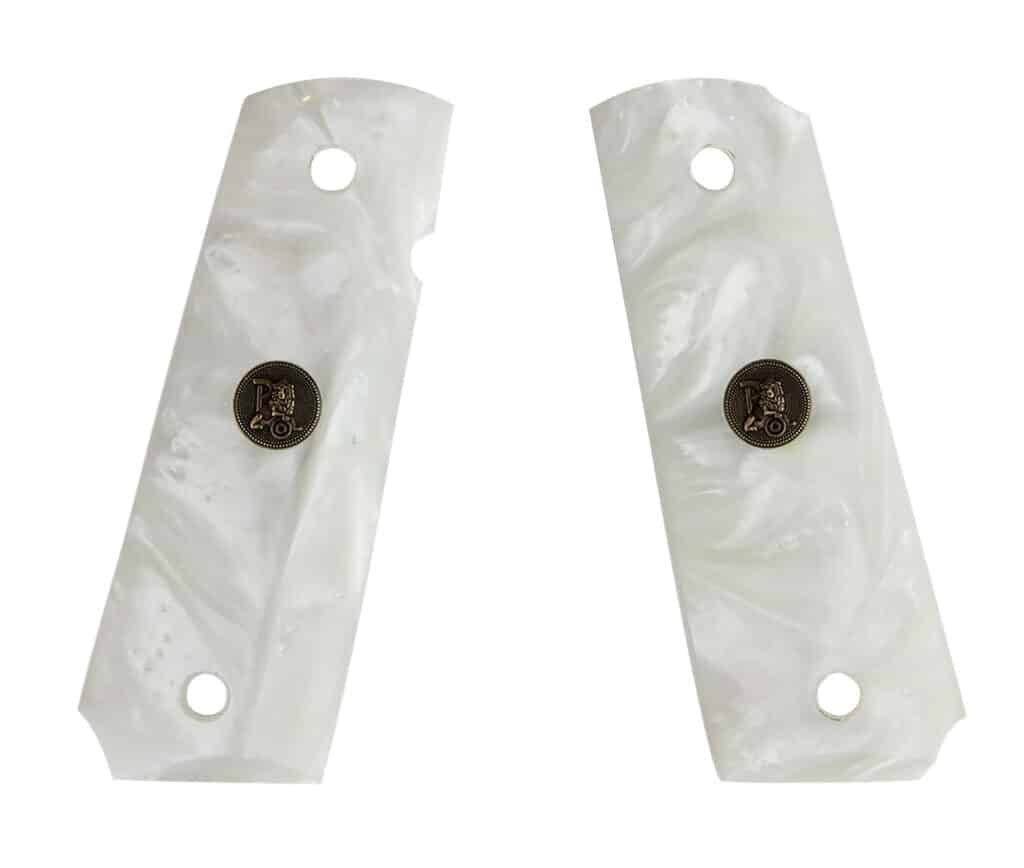 Pachmayr’s Brilliant Pearl grips add the ultimate custom look to your 1911. Brilliant Pearl grips are strong and weather-resistant, as well as offering a smooth gripping surface which will not snag on clothing for concealed carry.