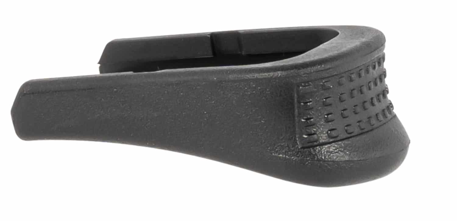 This grip extension replaces the magazine floor plate adding approximately 5/8″ additional length resulting in better control and comfort without altering the capacity of the factory magazine. It incorporates the factory texture pattern as well as an ergonomic curve for better grip.