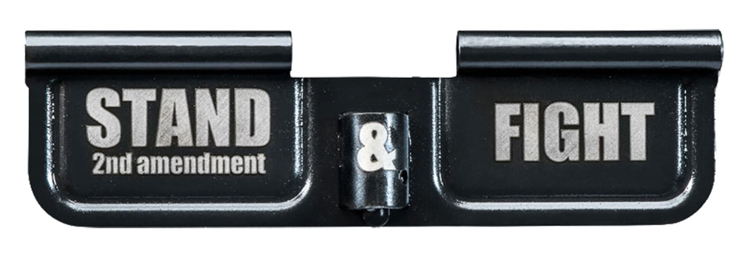 Phase 5’s AR-15 Ejection Port Cover/Dust Cover is laser engraved with a black parkerized finish. *Hardware not included. Engraved “Stand & Fight” on the port door.
