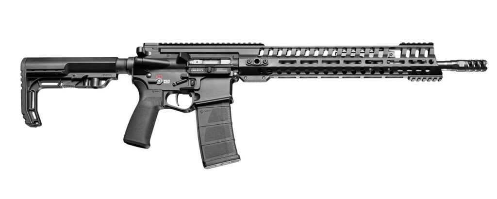 The POF USA P-415 EDGE in Black is a precision-engineered semi-auto rifle chambered in .223 REM/5.56 NATO, perfect for both tactical and recreational shooting. Featuring a 16.5″ nitrided barrel with a 1:8″ rate of twist, this rifle ensures consistent accuracy and reliability. The 14.5″ M-Lok rail enhances versatility by accommodating various accessories. Equipped with a triple port muzzle brake to reduce recoil and a manual thumb safety for secure handling, this rifle offers a robust shooting experience. The 6-position MFT stock allows for customizable length adjustments, while the black hardcoat anodized finish provides both durability and a sleek appearance. Constructed from 7075-T6 aluminum, the P-415 EDGE includes a Gen4 billet lower receiver and a single-stage trigger for precise shooting. It also features a threaded barrel and is optic-ready, making it adaptable to different shooting needs.