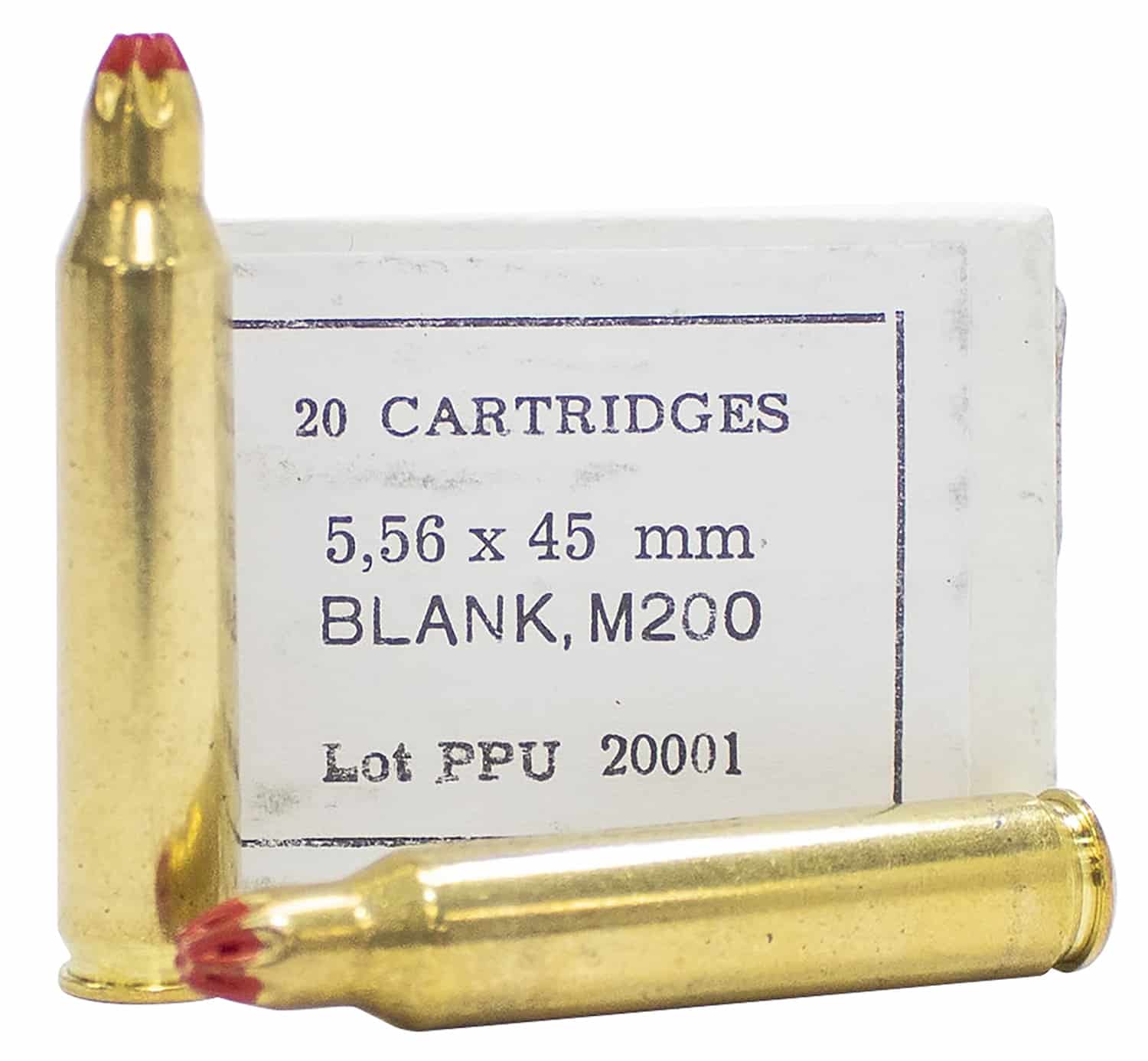 PPU manufactures many calibers of brass cased blank cartridges. Most are “full cased” which means they have an extended case shaped similar to a loaded round. This provides reliable functioning in all types of weapons. This 5.56 NATO blank comes in pack of 20 rounds per box, 100 boxes per case. Note: A correct blank firing adapter must be used on the gun to ensure semi- or full automatic operation.
