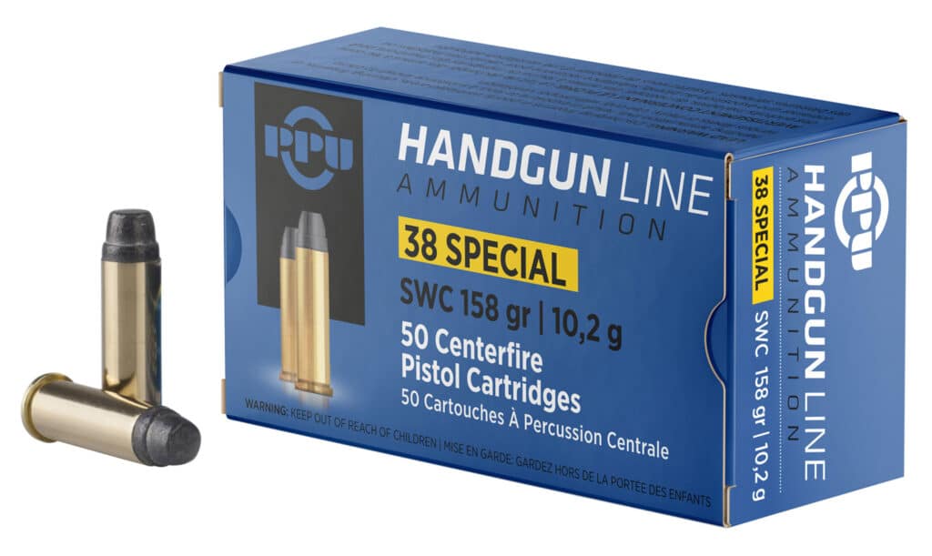 PPU PPH38SS Handgun 38Special 158gr Semi Wadcutter 50 Per Box/10