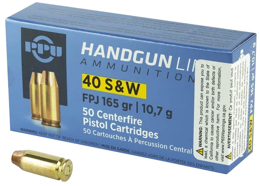 PPU PPH40F Handgun 40S&W 165gr Flat Point Jacketed 50 Per Box/10 Case