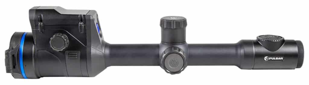 Pulsar is designed for constant, hard use. A magnesium alloy housing is light and strong. The housing reliably protects the scope from shocks, drops, moisture, heat or cold. At the same effectively removes the heat from electronics, minimizes image noise and increases consistency of the device operation during long-term observation. The Thermion 2 memory contains ten reticle configurations and functions (direct shot type, ballistic, scalable and regular), 9 color palettes lets the user observe their field of view more. Ergonomic focusing wheels are located on the right and left sides, The laser rangefinder is seamlessly integrated into a slim design riflescope. The rangefinder is compact, the receiver and emitter are within clearance limits of a single optical channel. The measuring range is 800 meters.