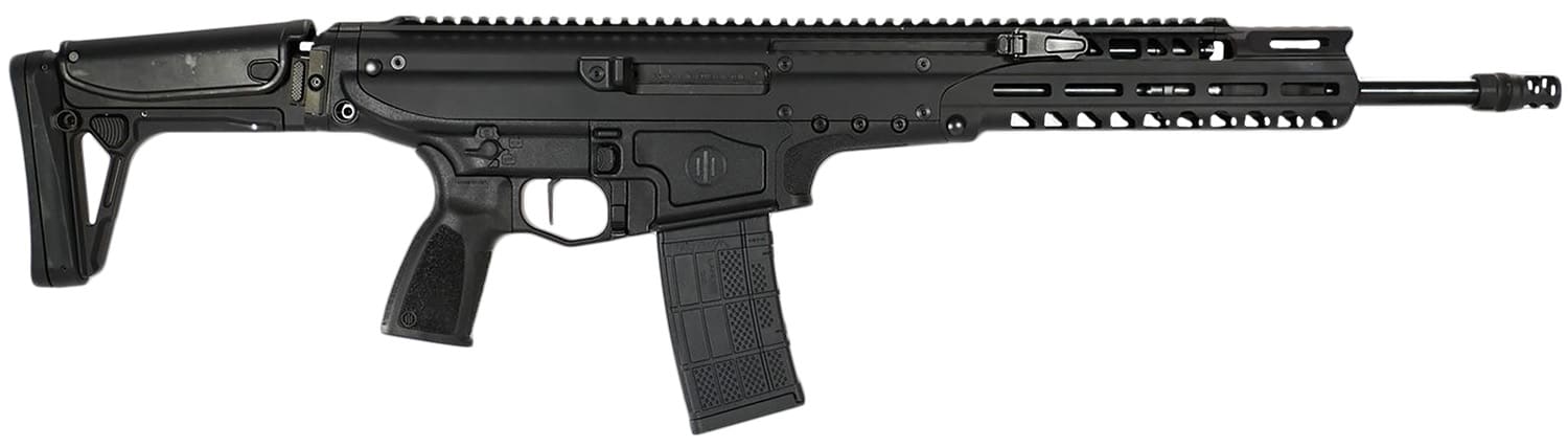 The PWS UXR features a Barrel Xchange System: An innovative barrel exchange system enabling users to switch between calibers and barrel lengths; Modified Long Stroke Piston System; Bore Evacuator; ambidextrous receiver & buttstock, folding buttstock with cheek and LOP adjustments. Configurable to either left or right-side folding. Mounted using an industry standard 1913 picatinny rail attached to the trigger housing; three position adjustable gas system including a dedicated suppressor setting; PWS FRC compensator; M-LOK handguard; Pin and Welded FRC Compensator, the extended FRC compensator is pin/welded to the barrel.