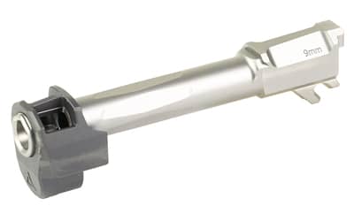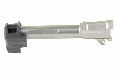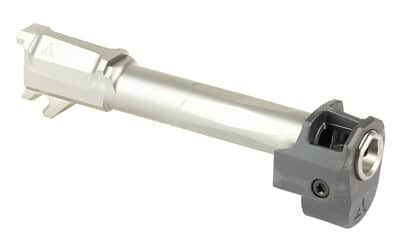 AFTERBURNER + RAMJET together reduce recoil up to 44% when using 115g ammunition. At only .47″ long, the AFTERBURNER offers unprecedented performance in a micro compensator and is more effective than the majority of full-size compensators on the market. The INTRA-LOK mounting system uses the taper lock principle: a tapered locking pin interfaces with an angled V-groove on the underside of the barrel. This perfectly times the compensator as it locks down onto the V-shaped profile on the muzzle end of the barrel. Angled front faces on the Afterburner aid in holstering.
