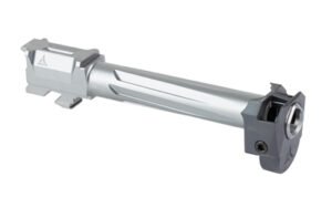 AFTERBURNER + RAMJET together reduce recoil up to 44% when using 115g ammunition. At only .47″ long, the AFTERBURNER offers unprecedented performance in a micro compensator and is more effective than the majority of full-size compensators on the market. The INTRA-LOK mounting system uses the taper lock principle: a tapered locking pin interfaces with an angled V-groove on the underside of the barrel. This perfectly times the compensator as it locks down onto the V-shaped profile on the muzzle end of the barrel. Angled front faces on the Afterburner aid in holstering.