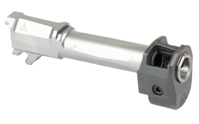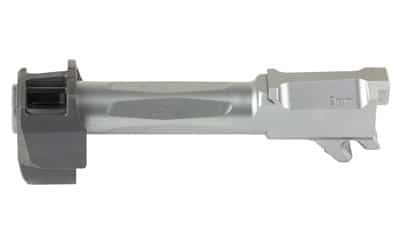 FTERBURNER + RAMJET together reduce recoil up to 44% when using 115g ammunition. At only .47″ long, the AFTERBURNER offers unprecedented performance in a micro compensator and is more effective than the majority of full-size compensators on the market. The INTRA-LOK mounting system uses the taper lock principle: a tapered locking pin interfaces with an angled V-groove on the underside of the barrel. This perfectly times the compensator as it locks down onto the V-shaped profile on the muzzle end of the barrel. Angled front faces on the Afterburner aid in holstering.