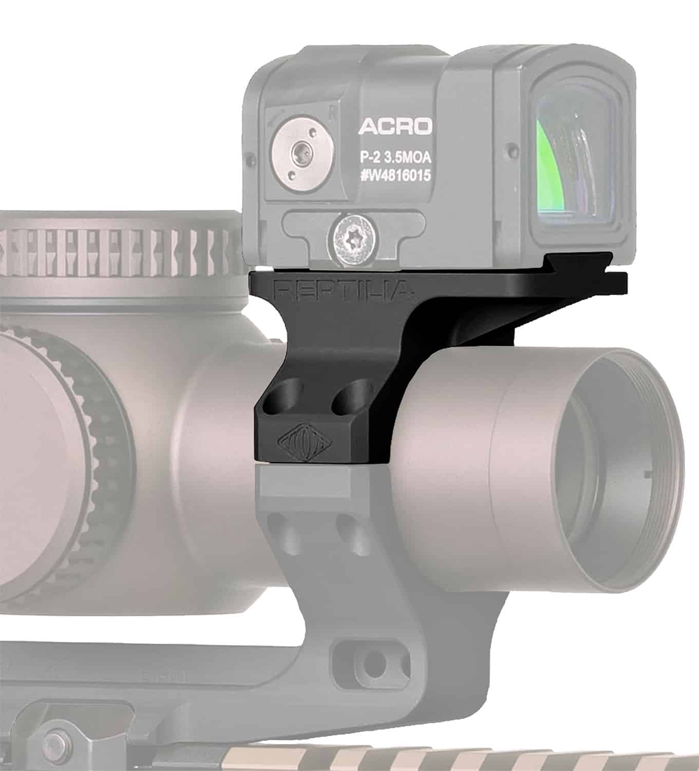 Introducing the Reptilia ROF-90 for ACRO/MPS in 34mm. The ROF-90 is a drop-in upgrade for the Reptilia AUS Mount or Geissele Super Precision 34mm magnified optic mounts. The ROF-90 was adds options for close-in target engagement and passive aiming with night vision. The ROF-90 for a Aimpoint ACRO or Steiner MPS at 90 (12:00) to add a close-range optic to your magnified scope. Additionally, the ACRO or MPS can be zeroed for use with use with subsonic cartridges such as 300 AAC Blackout, while allocating the magnified optic for use with supersonic ammunition.