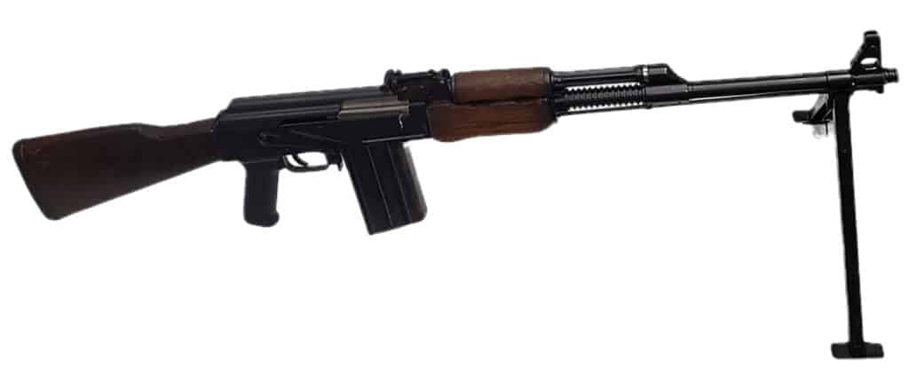 The RPK is a milled receiver rifle, chambered in 308 WIN caliber and built on a mil-spec, RPK surplus kit (YUGO M77B) with adequate American components to make it 922r compliant. The wood furniture has the markings, dents and dings illustrating the battlefield. Features CNC machined scope mount side rail; wood stock, upper and lower handguards; adjustable gas system with three settings and a bayonet lug. Includes bipod, cleaning rod and a steel magazine.