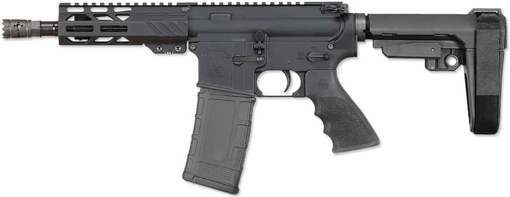 Rock River Arms BLK2132 LAR-15M 300 AAC Blackout 30+1 8″ Black M-LOK Handguard, Black Aluminum Picatinny Rail Receiver, Black Polymer SB Tactical SBA3 Arm Brace, Black Hogue Rubber Grip