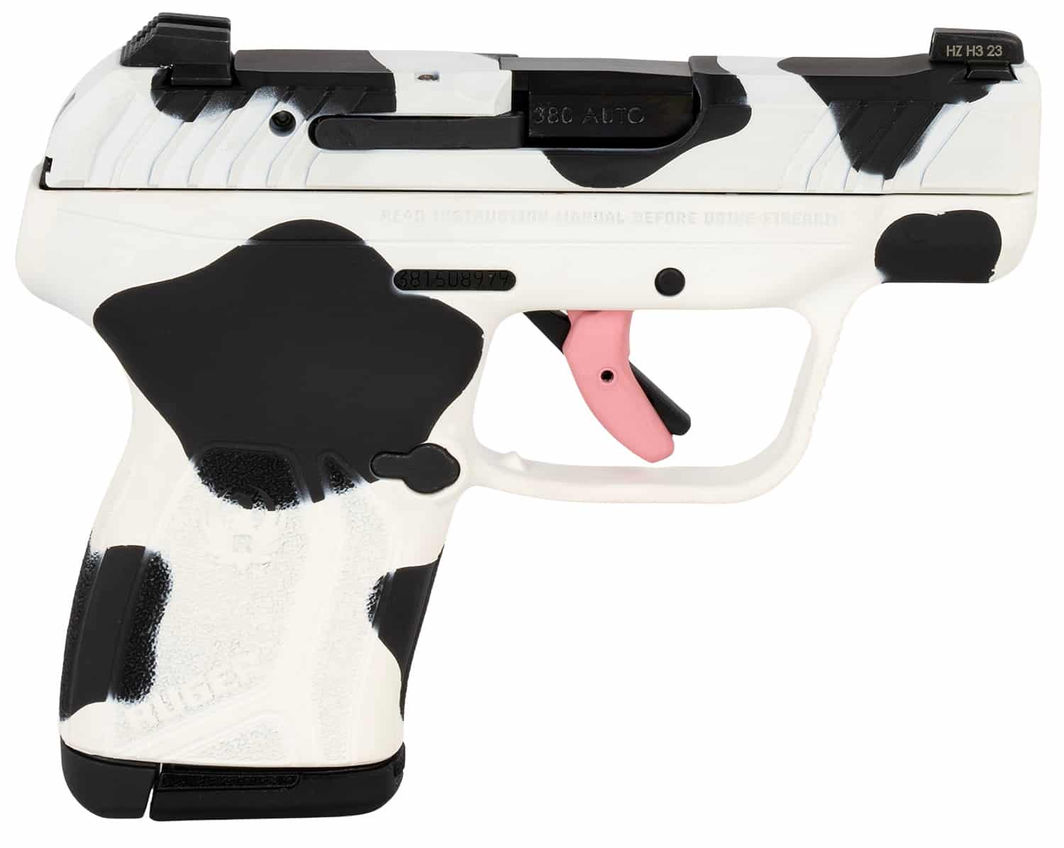 Ruger 228134 LCP Max Compact Frame 380 Auto 10+1 2.80″ Black Steel Barrel, Cow Print Cerakote Serrated Steel Slide, Polymer Frame Cow Print w/Textured Grip
