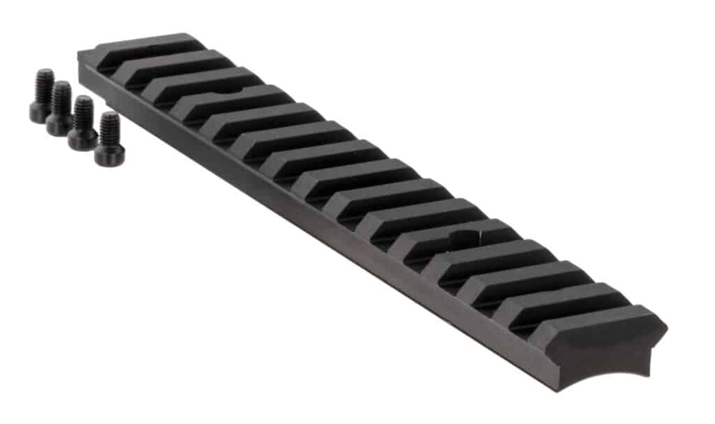 One-piece Picatinny scope base is designed for use with short action Ruger American Rifles. The rail is engineered specifically to fit the American Rifle factory scope mount holes on the gun’s receiver. MIL-STD Picatinny slot-and-rail spacing accepts Picatinny or Weaver scope rings. One-piece design is precision-machined from billet aluminum. Base is 6″ long with a hardcoat anodized finish and includes (4) TORX mounting screws and a T-10 wrench. Made in the USA. Genuine Ruger Factory Accessory.