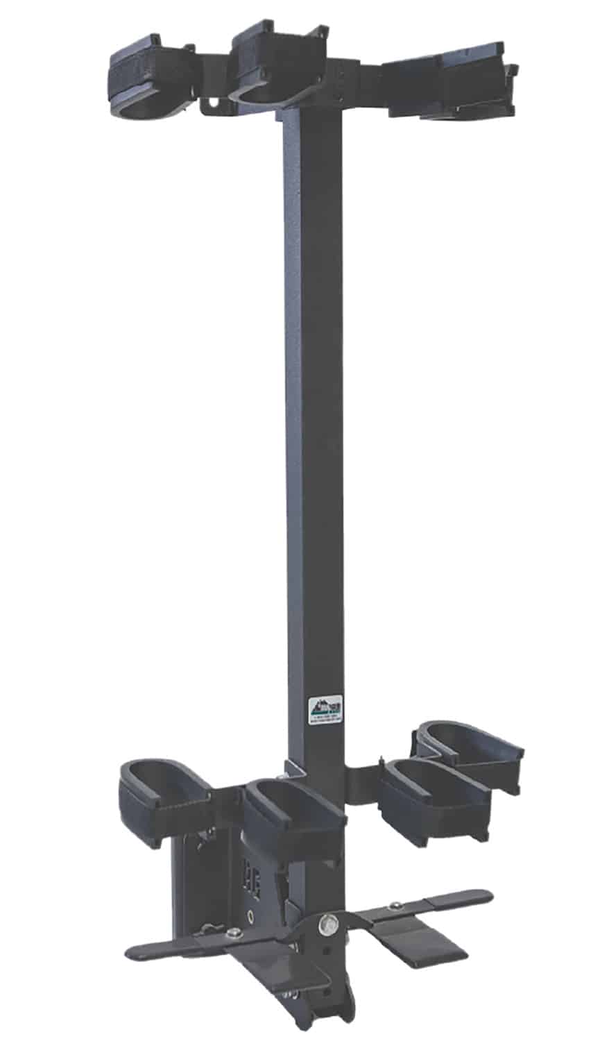 This wall mount from Rugged Gear easily attaches and removes from indoor or outdoor walls with thumbscrews. The mounting bracket design allows the wall mount to tilt towards or away from the wall. The rack is constructed of powder-coated, 10-gauge steel for a very robust gun mount. Its upper and lower mounting plates attach to wall for a secure hold in trucks, boats, duck blinds, cabin, garage, or any room wall. The side brackets allow 90-deree tilt away from wall or 30-tilt towards wall and the center hooks can be purchased to be screwed into side brackets to hold additional guns or gear.