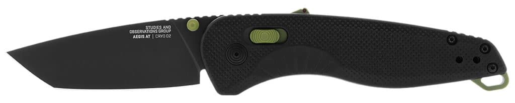 S.O.G SOG11410941 Aegis AT 3.13″ Folding Drop Point Plain Black TiNi Cryo D2 Steel Blade/Black w/Moss Accents GRN Handle