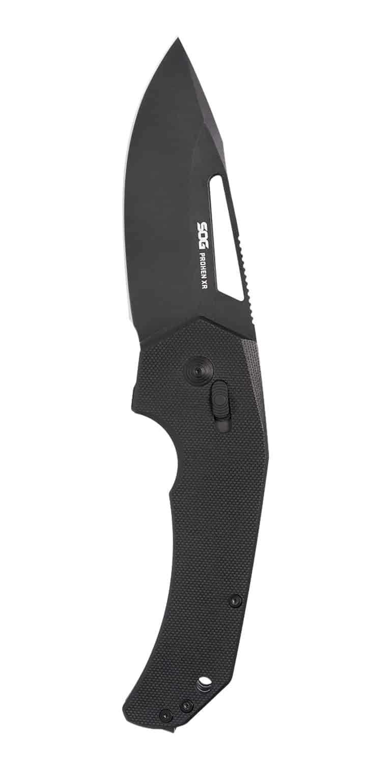 S.O.G SOG12250157 Prohen XR 3.35″ Folding Drop Point Plain Black TiNi Cryo D2 Steel Blade, Black Textured G10 Handle