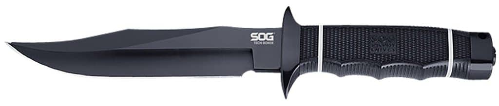 S.O.G SOGS10BK Tech Bowie 6.40″ Fixed Plain Clip Point Black Hardcased TiNi AUS8 SS Blade/ Black w/ White “SOG” Logo Kraton Handle