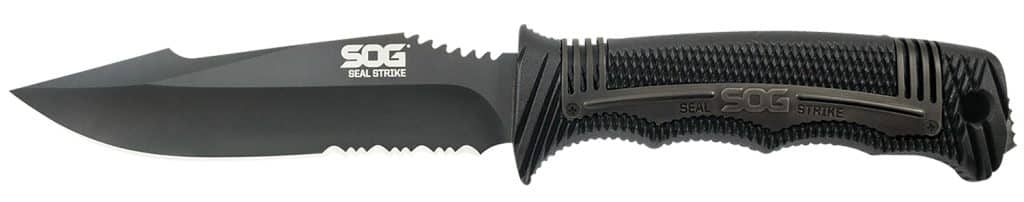 The SEAL Strike takes everything SOG has learned from years of real-world deployment and combines it into one spectacular package. This quality AUS-8 stainless steel, partially serrated blade is an excellent field companion for outdoor and underwater adventures. The SEAL Strike is serious business and carries on the tradition of supplying the worlds elite military forces. It comes with a deluxe model with built-in cord cutter, single-stage sharpener, fire starter and larger attachment points. Includes sheath.