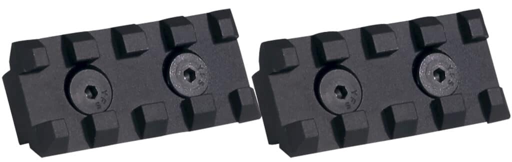 Here’s a high-quality rifle accessory every can use! Sometimes all you need is a small, rock-solid anchor point, and if your rifle add-on clamps to a Pic rail, this’ll do the trick. Evolution Accessory Rails can be added or removed at any of 7 positions around the Evolution Series rail and also any place along the length of the tube. Compatible with Evolution Series only and RTR Series. 2″ Accessory rail kit includes two rails, 4 slots per unit.