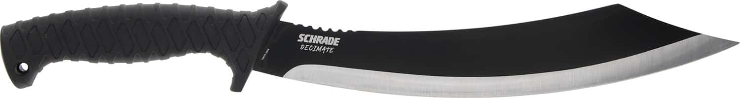 Schrade 1182527 Decimate Parang 11.75″ Fixed Parang Plain Black Black Oxide 3Cr13 Steel Blade 6.75″ Black Rubber Overmold Handle Includes Sheath