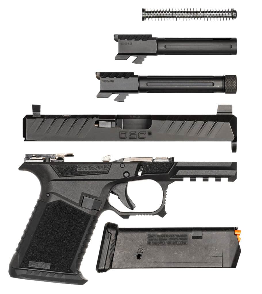 This SCT Manufacturing DSC9 are made with an industry leading proprietary polymer blend and compatible with Glock Gen3 19, 23 and 32 parts. Features serrations and index point on trigger guard; flared mag well; thumb accelerator pad; grip angle is the same as Glock; RMR optic cut with recoil posts; chamber view port above extractor and 1/3 co-witness steel sights. Includes Magpul magazine, Savior Specialist Case, one crown barrel and one threaded barrel, thread protector and a gun lock.