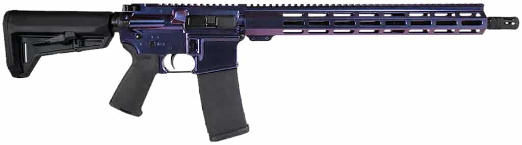 The Mongoose AR is a head-turning masterpiece, featuring the Mongoose Gun Candy Cerakote finish on both the receivers and handguard, creating a dynamic, color-shifting effect that gleams in different lighting. Complementing its sleek yet aggressive aesthetic, this rifle is outfitted with black Magpul furniture, delivering ergonomic comfort and rock-solid reliability. Built for those who demand both performance and standout style, the Mongoose AR is a striking addition to any collection.