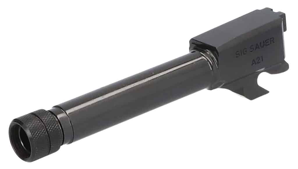 Chambered in 9mm, this threaded barrel is meant to fit with P320 XCOMPACT & SUBCOMPACT models. Includes thread protector cap. SPECS: Caliber 9MM, 1/2 X 28 RH thread pitch. Compatibility: P320 XCOMPACT / SUBCOMPACT W/ Loaded chamber Indicator, or any P320 that was designed to function with a 3.6″ 9MM barrel