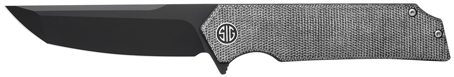 Sig Sauer Knives TS8BB Tsuru 3.30″ Folding Tanto Plain Black PVD 154CM SS Blade, 4.20″ Salt & Pepper Micarta Handle