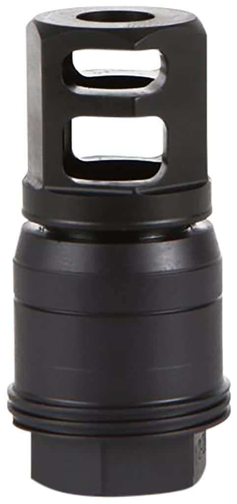 This Clutch-Lok QD mount doubles as a muzzle brake for our 5.56MM SLH/SLX suppressors. It offers a quick and simple attachment of your suppressor and less felt recoil when the suppressor is removed. Shoulder interface: 25-degree taper for use with SIG SAUER Taper-Lok barrels. A quick way to install or remove your SIG SAUER suppressor while getting the benefits of less felt recoil when the suppressor is removed with this muzzle brake.
