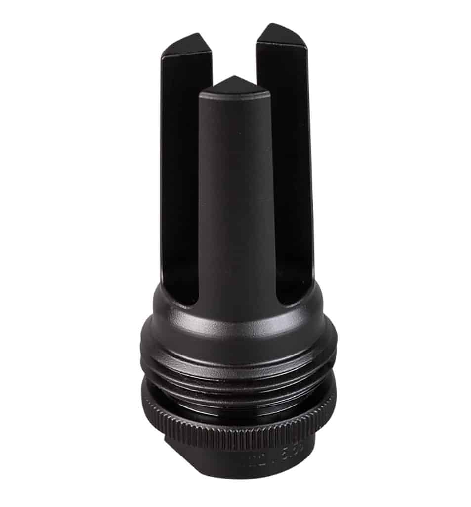 The SilencerCo ASR Flash Hider significantly suppresses muzzle flash, safeguarding the shooters vision, especially in low-light environments. Engineered for maximum effectiveness, this flash hider keeps shots discreet and on target. Enhance shooting experience with reduced flash signature and superior control. Additionally, the SilencerCo Flash Hider utilizes a patent-pending resonance suppression method that effectively eliminates the tuning-fork effect common with competing 3-prong Flash Hiders.