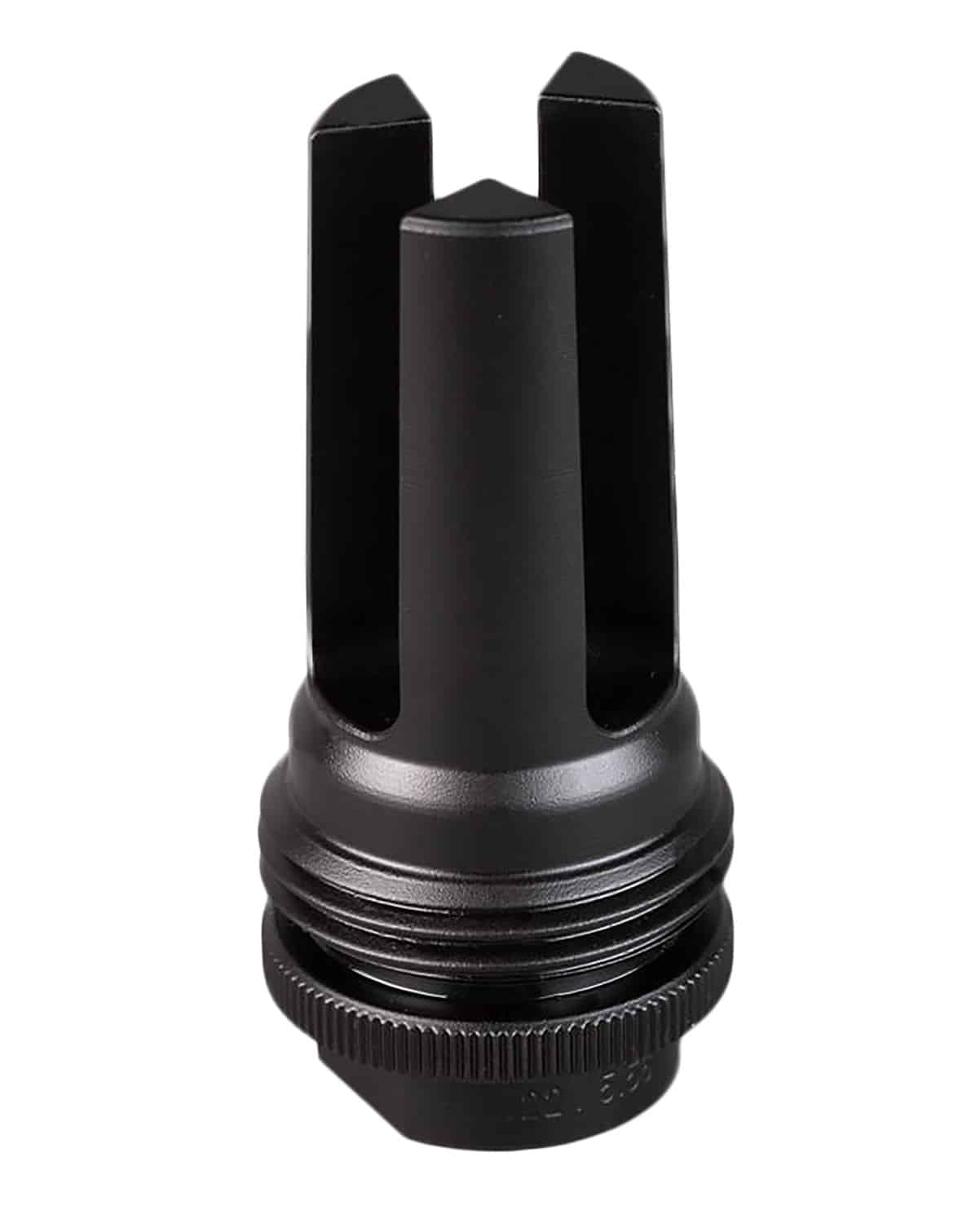 The SilencerCo ASR Flash Hider significantly suppresses muzzle flash, safeguarding the shooters vision, especially in low-light environments. Engineered for maximum effectiveness, this flash hider keeps shots discreet and on target. Enhance shooting experience with reduced flash signature and superior control. Additionally, the SilencerCo Flash Hider utilizes a patent-pending resonance suppression method that effectively eliminates the tuning-fork effect common with competing 3-prong Flash Hiders.