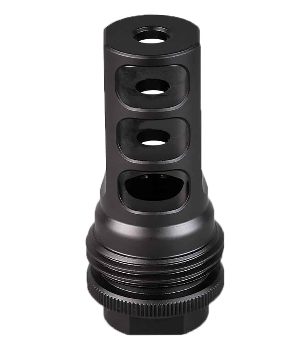 The SilencerCo 3-port Muzzle Brake is designed to redirect a portion of the propellant gases to counter recoil and reduce muzzle climb, enhancing accuracy and control with every shot. Crafted from premium materials and precision-engineered for superior performance, the muzzle brake is the ultimate choice for serious shooters.