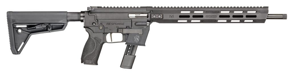 The Smith & Wesson Response breaks barriers for those looking to enter the pistol caliber carbine market. With its innovative FLEXMAG System, you can use a wide range of double stack 9mm pistol magazines from S&W and other manufacturers. The familiar MSR controls make it an easy transition for those looking to use on the range and with the ability to change parts with existing MSR accessories, it makes optimizing to your needs easy. Includes Crimson Trace Rail Master Tactical Light, three magazines and carry case.