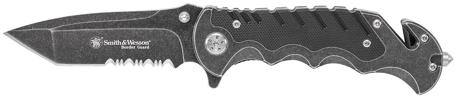 Smith & Wesson Knives SWBG10SCP Border Guard 3.50″ Folding Part Serrated Stainless Steel Blade 4.80″ Aluminum/G10 Handle Includes Pocket Clip
