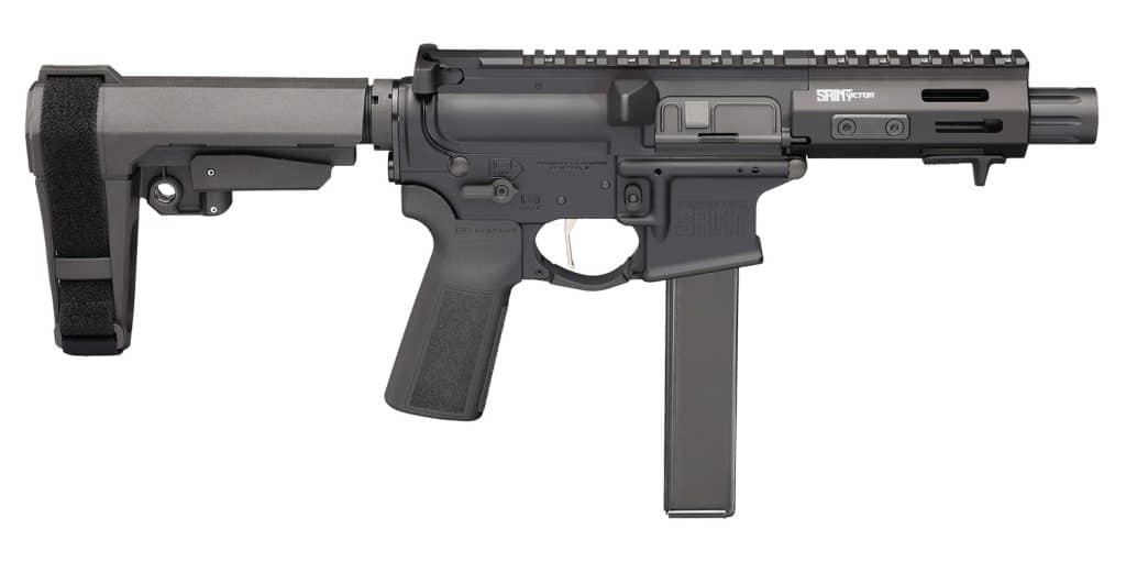 The Springfield Saint Victor features a lower receiver with the Accu-Tite Tension System; SB tactical SBA3 brace; 3-position adjustable receiver extension; B5 trigger guard system; B5 Systems Type 23 P-grip; standard charging handle; SA blast Diverter muzzle device and an aluminum, free floating handguard w/SA Locking tabs, M-LOK. Includes a 32rd magazine.