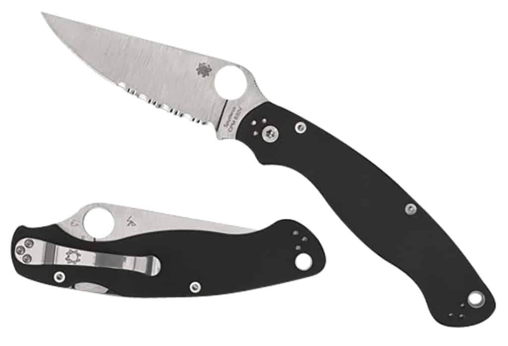 Designed by Spyderco co-founder Sal Glesser as the perfect knife for forward-deployed military personnel, the original Military Model is one of the cutlery industrys most iconic designs. The Military 2 incorporates several significant design improvements. The Military 2’s full-flat ground CPM S30V blade is supported by Spydercos signature Compression Lock mechanism, which offers greater strength and even safer one-handed operation. The stainless steel liners that form the foundation of the lock are larger, giving the knife increased structural strength and anchoring its four-position pocket clip, which is configurable for left or right-side, tip-up or tip-down carry. The skeletonized liners are nested within peel-ply-textured G-10 scales to maintain a slim profile and complement its open-backed construction to reduce the knifes overall weight.