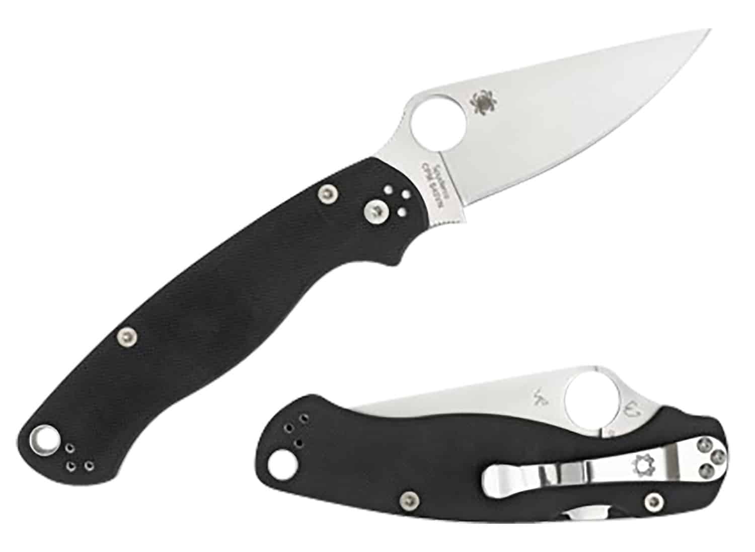 Spyderco C81GPLE2 Para Military 2 3.42″ Folding Plain Satin CPM S45VN SS Blade Black Textured G10 Handle Left Hand Includes Pocket Clip