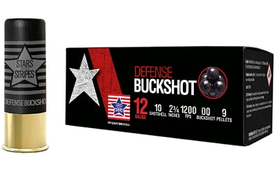 Stars and Stripes is a high quality Self defense buckshot load designed specifically for the 12 gauge shotgun defense enthusiast. This particular load features a standard shell length of 2-3/4″ and contains a 9 pellet 00 buckshot lead load.