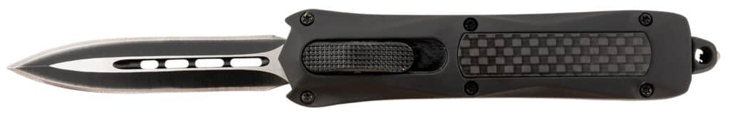 Steel River Knives MA163BD Spartan Mini 2.70″ OTF Dagger Plain Black/Silver 440C SS Blade/ Black w/Carbon Fiber Inlay Aluminum Zinc Alloy Handle