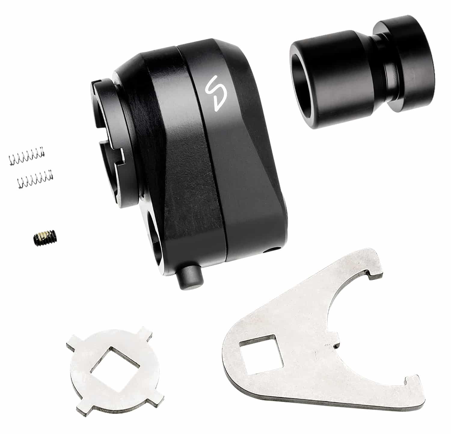 To detach, push the button and twist counter-clockwise 30 degrees.The buttstock will then be separated from the firearm. To re-attach, align the two pieces, push in and turn clockwise 30 degrees. The steel locking mechanism automatically secures the adapter. It’s 7075 aluminum construction and steel internals make the RAB-AD both robust and lightweight. The RAB-AD is designed for gas piston, direct impingement, direct blow back and radial delayed blowback systems in the AR platform.