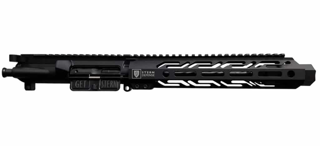 Includes: Stern Defense 10 inch M-LOK rail(Barrel nut, bolts etc.) Stern Defense 8.5 inch 9mm barrel. SD HBC 9MM Blast Can. Stern Defense assembled upper receiver with dust cover and forward assist. Stern Defense SD BU9 Glock cut bolt. SD CH1 enhanced charging handle.