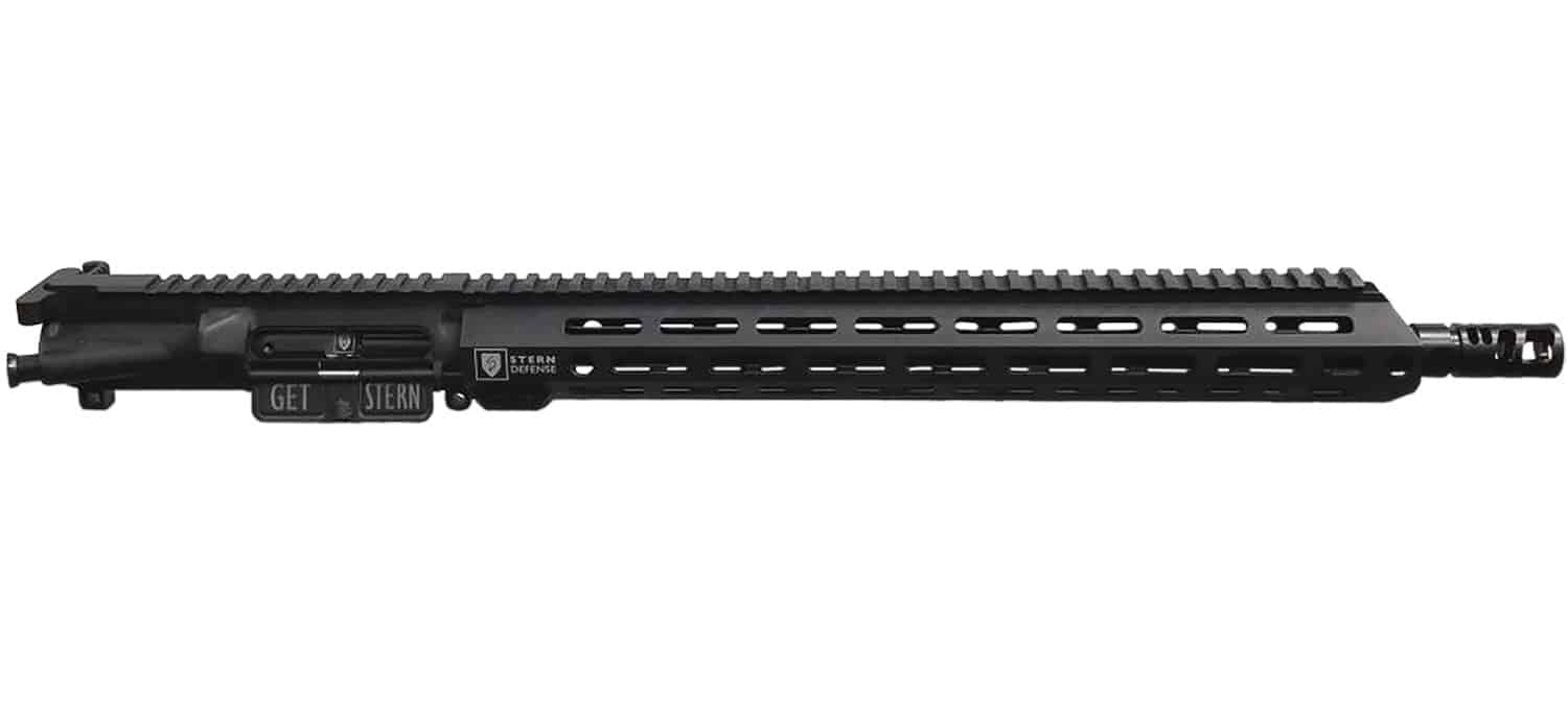 Includes: Stern Defense 15 inch M-LOK rail(Barrel nut, bolts etc.) Stern Defense 16.1 inch 9mm barrel. SCB 9 COMPENSATOR BREAK. Stern Defense assembled upper receiver with dust cover and forward assist. Stern Defense SD BU9 Glock cut bolt. SD CH1 enhanced charging handle.