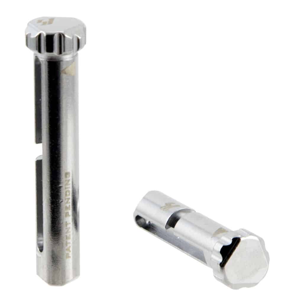 The Strike Industries Shift Pins bring yet another innovative solution to the AR-10/LR-308 market. Already keeping the extended grip surface for easy disassembly without a need for a pin punch, the pins are also designed with quick detach mechanisms that result in not needing to remove extra parts such as an endplate, castle nut and buffer tube. This model has a chrome finish.