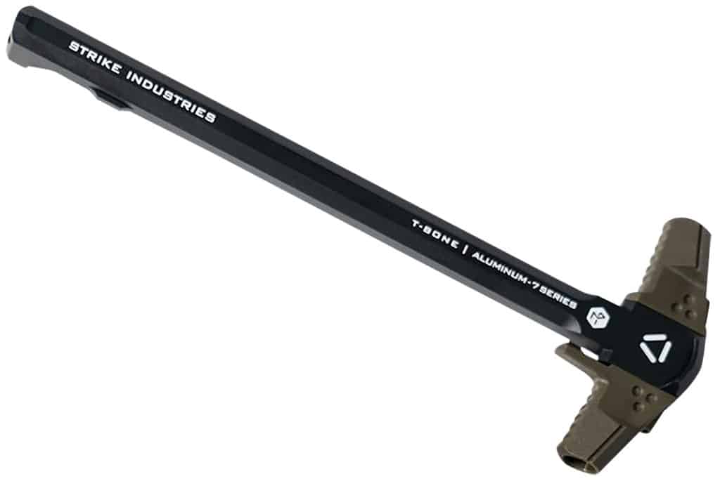 The Strike Industries T-Bone Charging Handle for .223/5.56 AR-15’s feature a patented gas redirect system that allows you to configure the gas to exit only left, only right or evenly to both sides. The shaft of the charging handle is machined from 7000 series aluminum which excels in applications requiring lightweight and high strength. However, with comfort and control in mind, the T-Bone latchless handles are made from SI PolyFlex polymer. The Strike Industries T-Bone Charging Handle for .223/5.56 gives you a modular way to direct the gas and setup the feel and look for one of the most overlooked and essential part of your AR upper receiver.